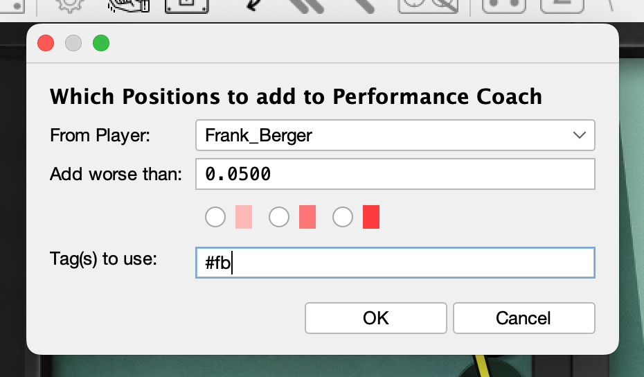. You choose which player you want to create flashcards for, from which error level flashcards should be created and a tag to be added (#move and #cube are added automatically). I strongly recommend adding a personal tag here (I use #fb, for example) to train your own mistakes in a targeted manner.