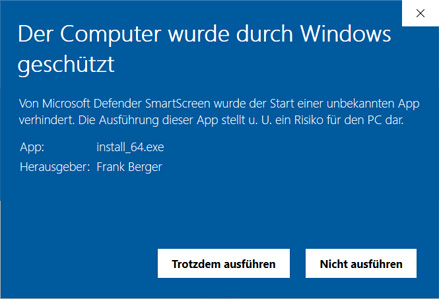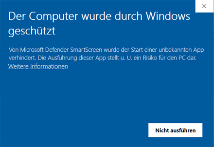 Wenn Ihr PC durch "Smartscreen" geschützt ist, sehen Sie möglicherweise dieses Bild, obwohl der Download kryptografisch signiert ist: